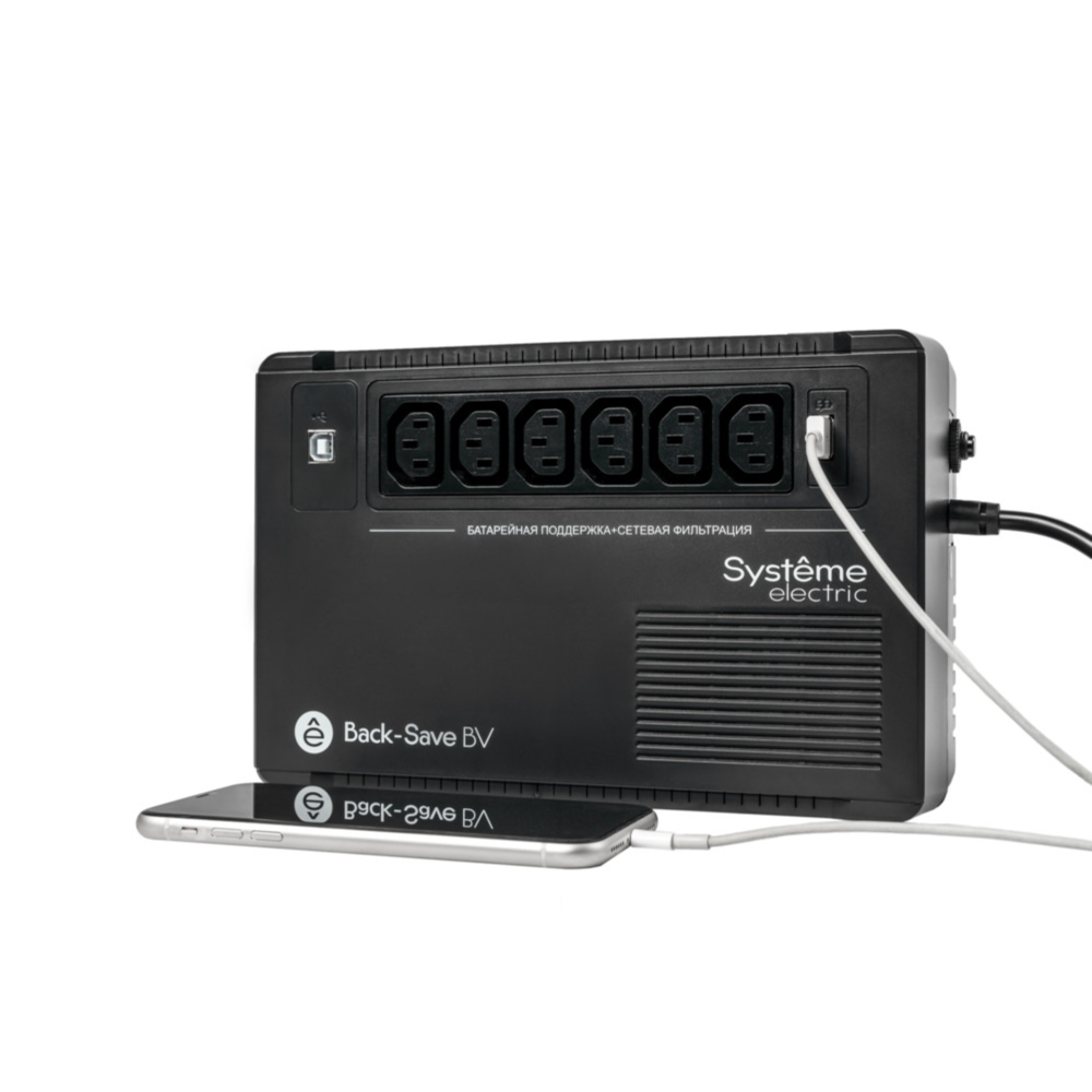ИБП Back-Save BV Systeme Electric 600 ВА, автоматическая регулировка напряжения, 6 розеток С13, 230 В, 1 USB Type-A