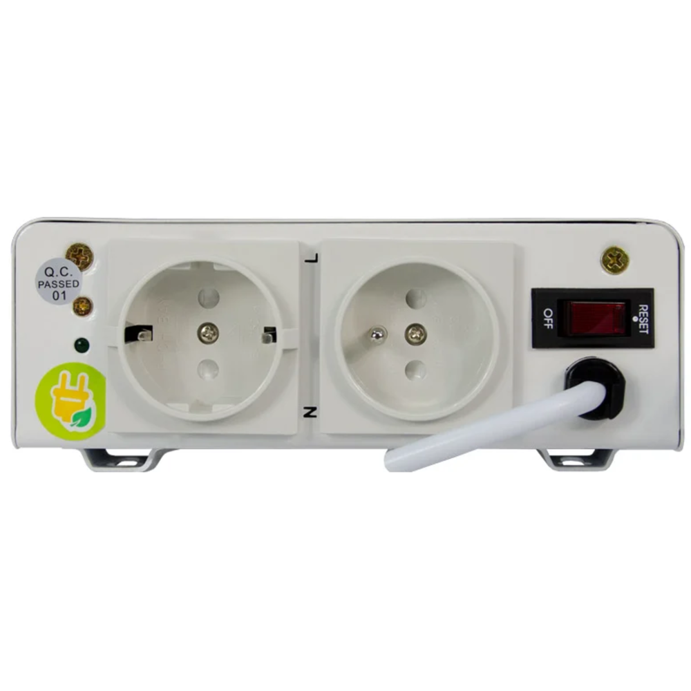Данная модель имеет две разных розетки. Одна предусмотрена для подключения котла, вторая имеет стандартный вид, совместимый с обычной вилкой.