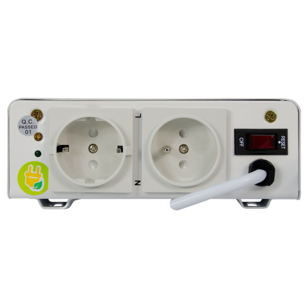 Напряжение на входе (В)140-260 | Напряжение на выходе (В)220 | Тип и количество выходных розетокSchuko x 2 |