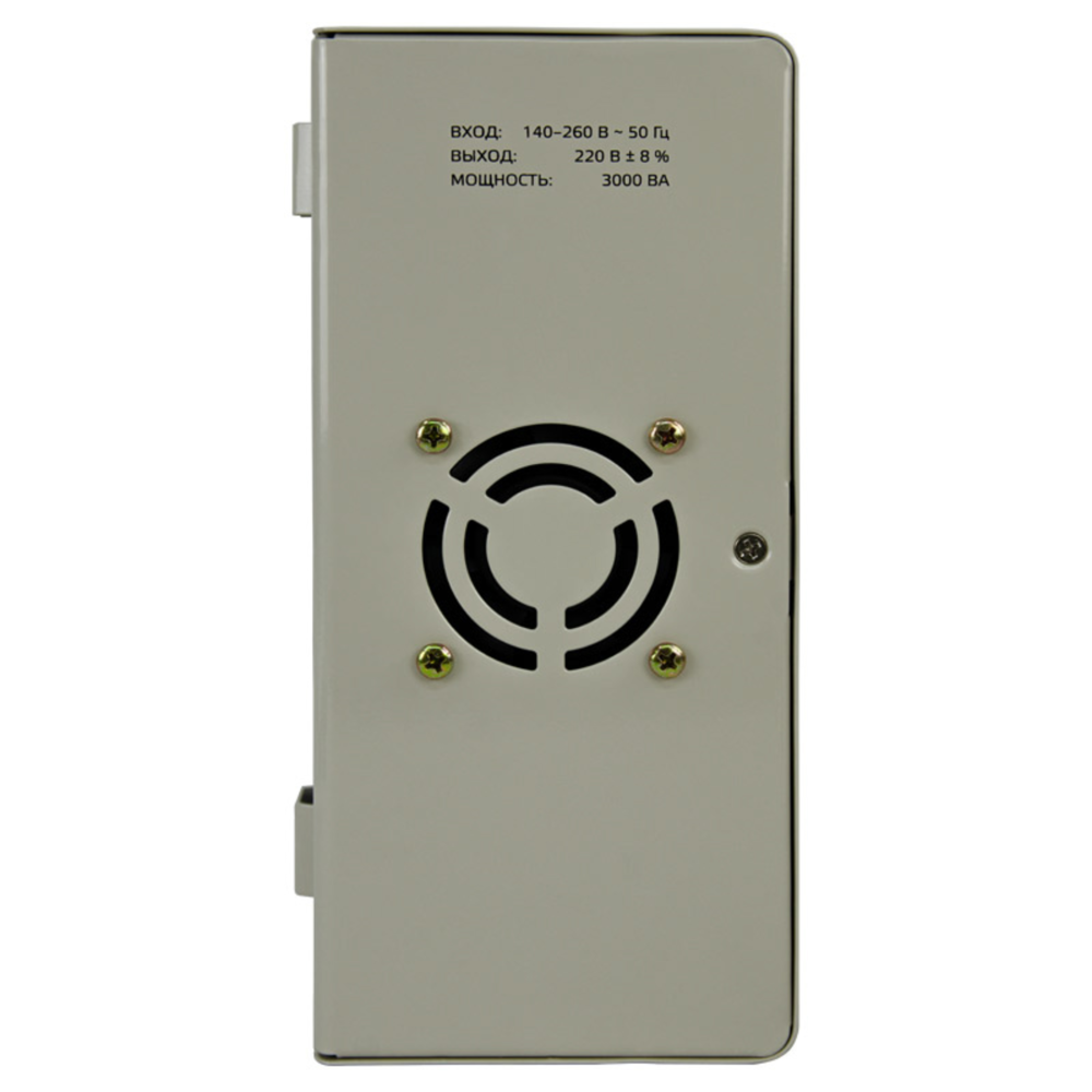 Напряжение на входе (В)140-260 | Напряжение на выходе (В)220 | Тип и количество выходных розетокКлеммный терминал: одна фаза, нейтраль и заземление |