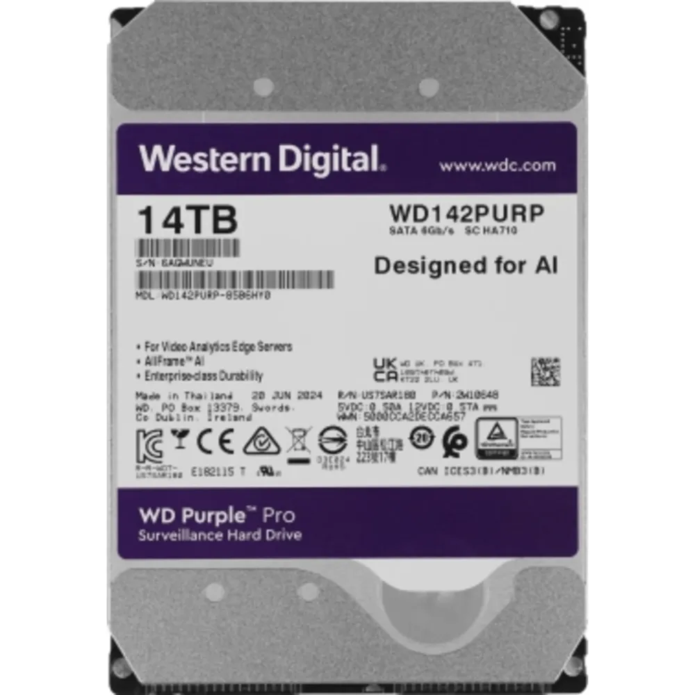 Жесткий диск WD SATA-III 14TB WD142PURP Surveillance Purple Pro (7200rpm) 512Mb 3.5"