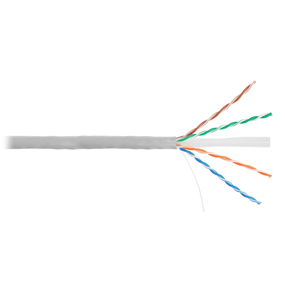 Кабель NIKOLAN U/UTP 4 пары, Кат.6 (Класс E), тест по ISO/IEC, 250МГц, одножильный, BC (чистая медь), 24AWG (0,53мм), внутренний, PVC нг(А), серый