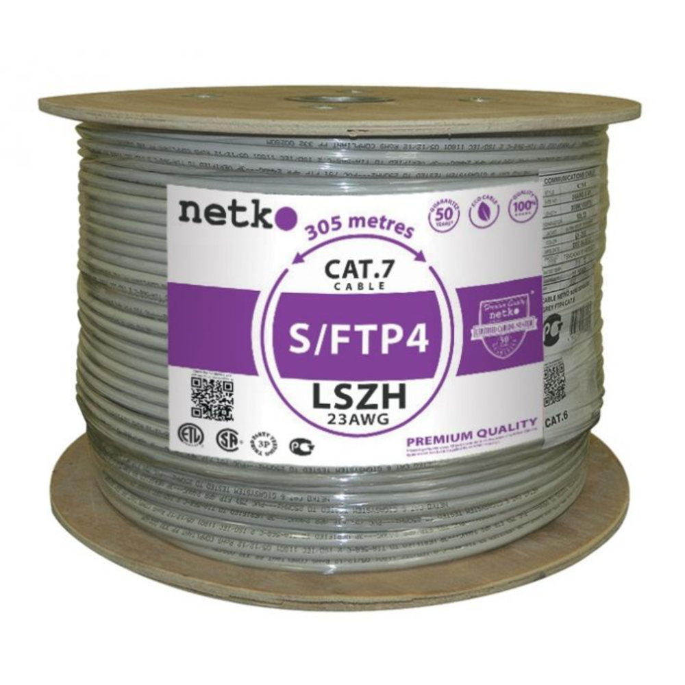 Кабель S/FTP4 cat.7 NETKO, 4 пары, 23 AWG BC, нг(А)-HF LSZH, 305м