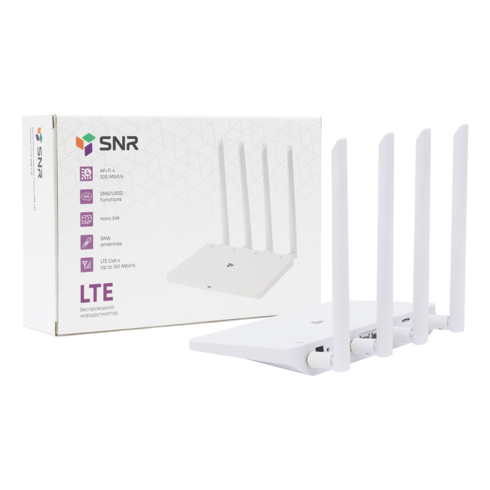 Аппаратная платформа Порты WAN и LAN поддерживают скорость до 100 Мбит/сек; Wi-Fi 4, MIMO 2x2, 2.4 ГГц; LTE модем cat.4, до 150 Мбит/с. Сим-карта формата nano.Новое программное обеспечение LTE поставляется с новым программным обеспечением EasyWRT.Возможности EasyWRT в сравнении с классическим ПО SNR-CPE Firmware: Активно улучшается и дорабатываются функции удаленного управления CPE оператором связи по протоколу TR-069 (CWMP), вводим новые ветки для удобного взаимодействия оператора связи с парком оборудования; Внедрили средства диагностики для оперативного нахождения и устранения неполадок; Внедрен функционал гостевых сетей через MBSSID с возможностью установления ограничения доступа для подключения клиентов по времени; Восстановление ПО по TFTP; Возможна установка открытых пакетов приложений с помощью пакетного менеджера OPKG.Расширенные возможности беспроводной сети Добавлены новые функции и улучшены имеющиеся полезные технологии: MBSSID - создание гостевых беспроводных сетей с возможностью ограничения доступа по времени; WLAN/VLAN - возможность привязки SSID к интерфейсам VLAN.Мобильная сеть Отправка SMS/USSD; Failover - аварийное переподключение в случае сбоя системы или сети; Подключение внешней антенны через SMA разъёмы (LTE - SMA Female, Wi-Fi - RP-SMA Female).Операторам связиНАГ предлагает операторам связи гибкий набор предложений по кастомизации беспроводных маршрутизаторов SNR-CPE: возможно изменение корпуса, коробки, кастомизация ПО под нужды конкретной сети, подробнее о кастомизации уточняйте у персонального менеджера.Для самостоятельной кастомизации параметров ПО EasyWRT функционирует инструмент EasyCustom имеющий возможность считывать, записывать и изменять конфигурационные файлы в памяти маршрутизатора. Инструмент позволяет провести ручное изменение настроек EasyWRT с помощью скриптов без повторной сборки прошивки, и записать измененные параметры в постоянную память маршрутизатора через загрузку собранного архива напрямую в маршрутизатор. При загрузке EasyCustom, системные файлы будут заменены на аналогичные файлы из архива. Доступно на версиях EasyWRT от 2.4.0 и выше. Подробнее об EasyCustom в нашей базе знаний.Диагностические инструменты и удалённый доступ по ssh или CWMP, позволят оперативно решать пользовательские проблемы и предупреждать проблемы на сети. ПО разработано с учётом особенностей Российского рынка и стран СНГ.Оперативная поддержкаМы обеспечиваем качественную и быструю поддержку, благодаря размещению разработки в России. Доступные ресурсы: Сервисный центр для поддержки текущих клиентов; База знаний; Телеграм-канал SNR CPE News, а если есть вопрос - добро пожаловать в SNR CPE Chat; Мастер самостоятельной настройки; Форум НАГ.