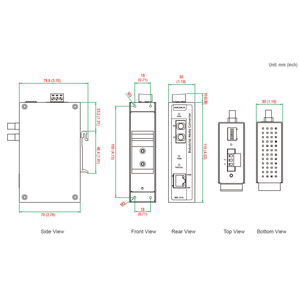 Технические характеристики Медиаконвертер Ethernet 10/100BaseTX в 100BaseFX (многомодовое оптоволокно) в металлическом корпусе с расширенным диапазоном температур MOXA