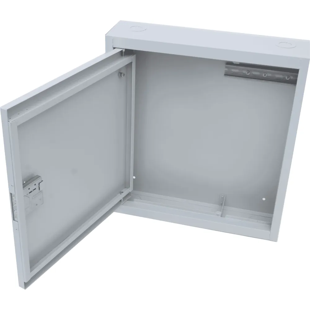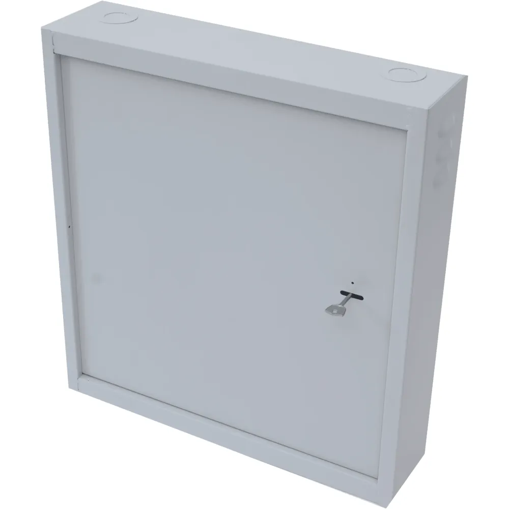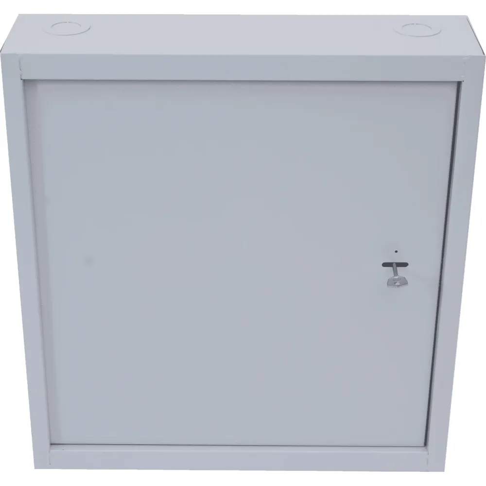 Шкаф имеет цельнометаллическую сварную конструкцию, выполнен из стали толщиной 1 мм. Крепление к стене анкерными болтами через сквозные отверстия в задней стенке шкафа. Дверь шкафа имеет рамную конструкцию и утоплена на 10мм, фиксируется замком, стойким к подбору ключей и механическим повреждениям. . Внутри установлен болт заземления. Порошково-полимерная окраска RAL7035.