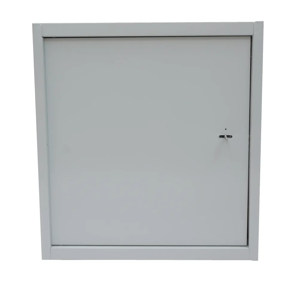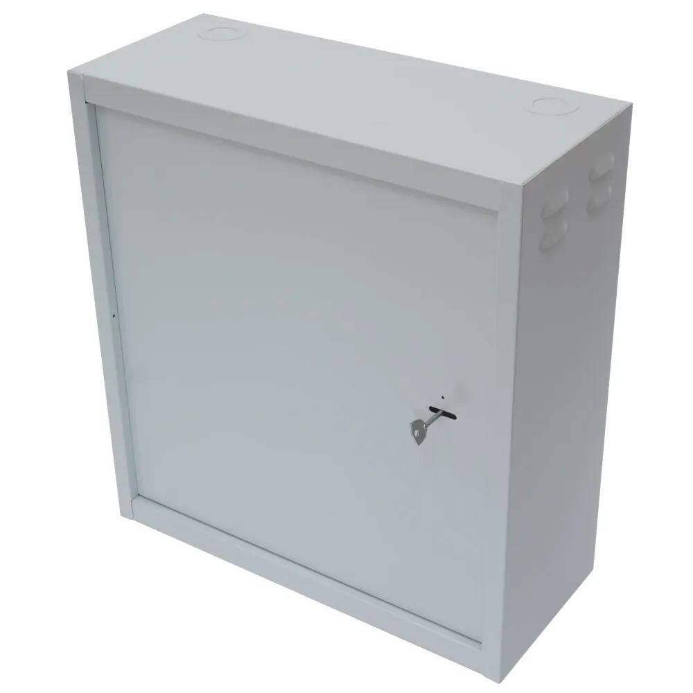 Шкаф имеет цельнометаллическую сварную конструкцию, выполнен из стали толщиной 1 мм. Крепление к стене анкерными болтами через сквозные отверстия в задней стенке шкафа. Дверь шкафа имеет рамную конструкцию и утоплена на 10мм, фиксируется замком, стойким к подбору ключей и механическим повреждениям. Специально разработанные внутренние шарниры препятствуют вскрытию шкафа путем срезания петель. Внутри установлен болт заземления. Порошково-полимерная окраска RAL7035. Замки имеют одинаковую секретность + 1 ключ.