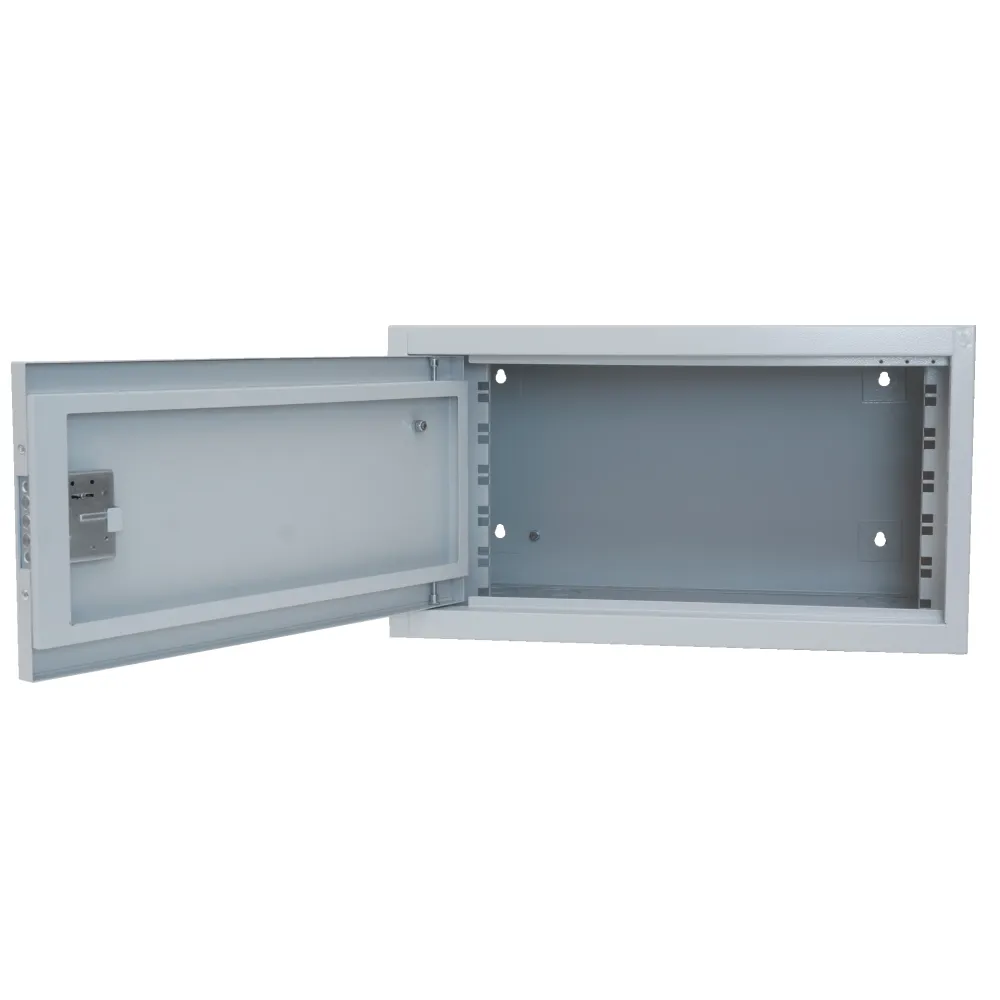 Шкаф имеет цельнометаллическую сварную конструкцию, выполнен из стали толщиной 1 мм. Крепление к стене анкерными болтами через сквозные отверстия в задней стенке шкафа. Дверь шкафа имеет рамную конструкцию и утоплена на 10мм, фиксируется замком, стойким к подбору ключей и механическим повреждениям. Специально разработанные внутренние шарниры препятствуют вскрытию шкафа путем срезания петель. Внутри установлен болт заземления. Порошково-полимерная окраска RAL7035. Замки имеют одинаковую секретность + 1 ключ.