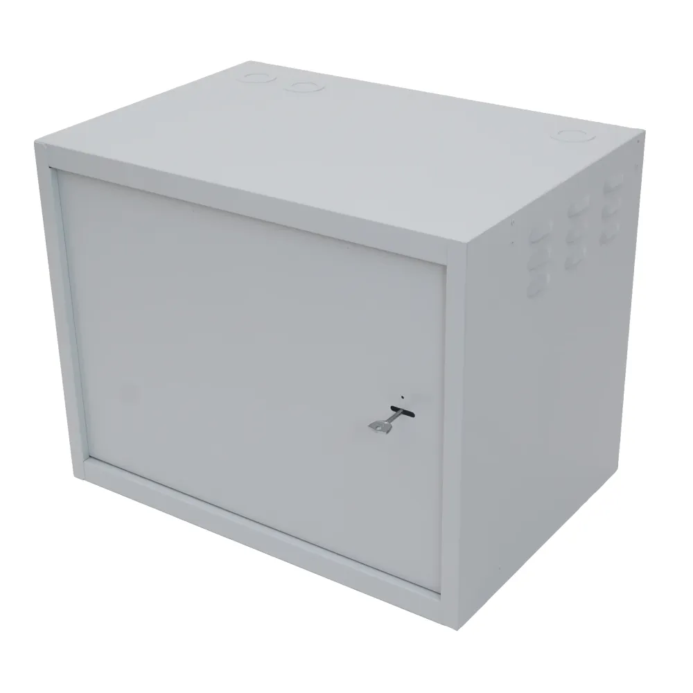 Шкаф имеет цельнометаллическую сварную конструкцию, выполнен из стали толщиной 1 мм. Крепление к стене анкерными болтами через сквозные отверстия в задней стенке шкафа. Дверь шкафа имеет рамную конструкцию и утоплена на 10мм, фиксируется замком, стойким к подбору ключей и механическим повреждениям. Специально разработанные внутренние шарниры препятствуют вскрытию шкафа путем срезания петель. Внутри установлен болт заземления. Порошково-полимерная окраска RAL7035. Замки имеют одинаковую секретность + 1 ключ.
