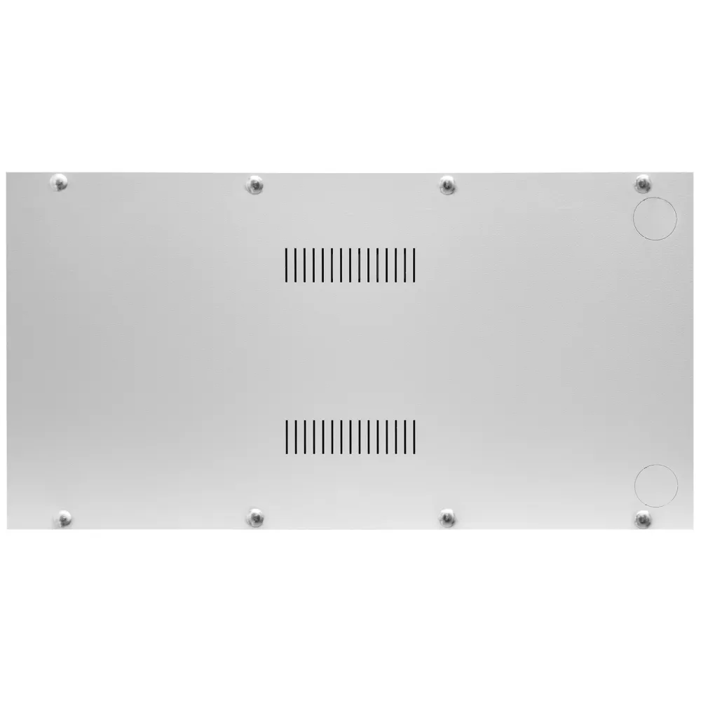 Настенные антивандальные шкафы серии VPS предназначены для монтажа 19’’ телекоммуникационного оборудования. Среди несомненныхдостоинств шкафов VPS - надежность и простота конструкции, удобство монтажа и эксплуатации, эстетичный внешний вид. Конструкция шкафа – сборно-разборная. Боковые панели несъемные, крепятся болтами к крыше и основанию шкафа. При монтаже шкафа заднюю стенку можно снять и закрепить на стене, а затем навесить на нее корпус. Данный способ установки позволяет экономить трудозатраты, время и деньги.Для максимального удобства предусмотрены по одному прямоугольному и по два круглых кабельных вводов в крышке и в основании шкафа (150х50мм – прямоугольное полупробивное отверстие, 37мм – диаметр круглого полупробивного отверстия). Также в боковых панелях предусмотрены по два круглых отверстия для кабельного ввода (37мм – диаметр круглого полупробивного отверстия). Итого весь шкаф имеет: 2 прямоугольных отверстия для кабельного ввода (150х50мм); 8 круглых отверстий для кабельного ввода (d=37мм). *Шкафы глубиной 450мм комплектуются 1-ой парой вертикальных направляющих. Шкафы глубиной 600мм комплектуются 2-мя парами вертикальных направляющих. Конструкция: Крыша/основание Боковая панель Стенка задняя Дверь Монтажная рейка Габаритные размеры