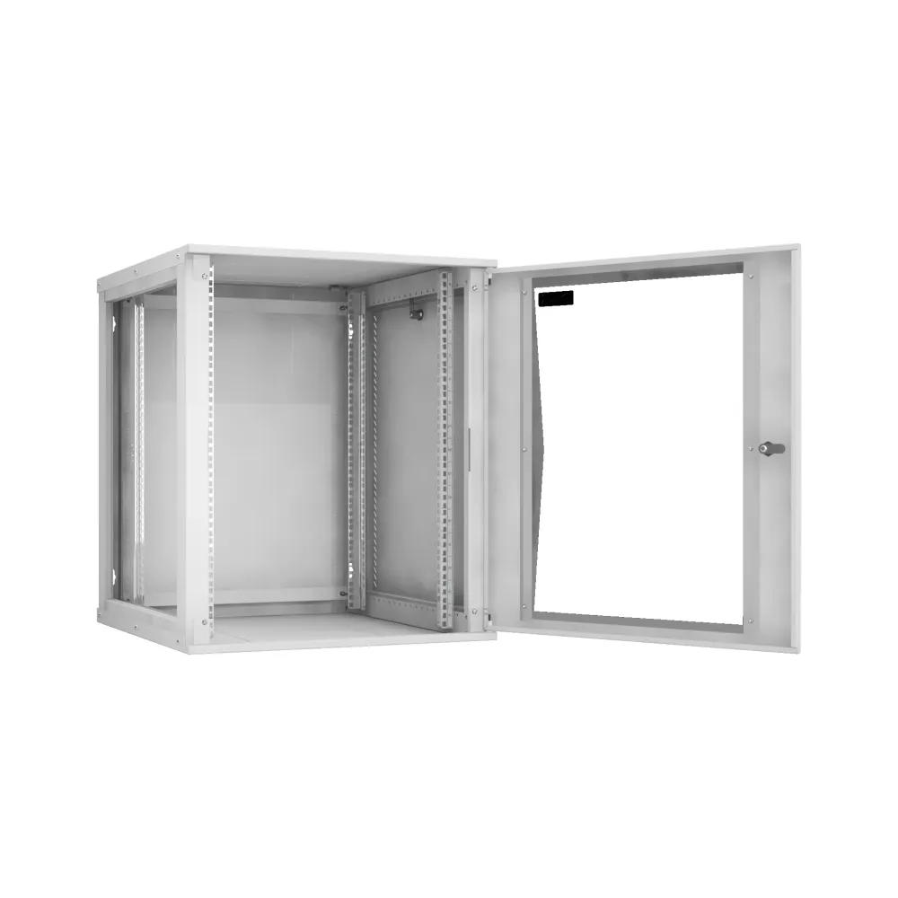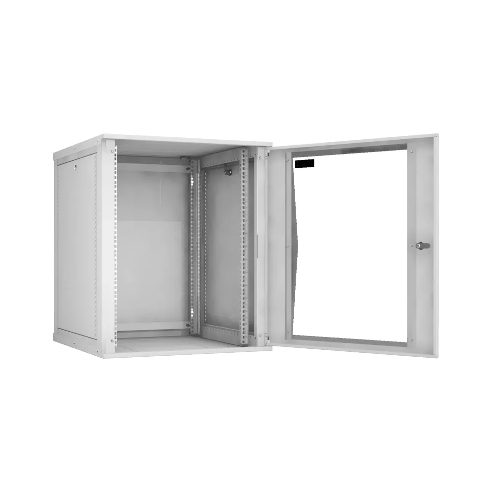 Настенный разборный шкаф TLK 19", 15U, стеклянная дверь, Ш600хВ703хГ600мм, 2 пары монтажных направляющих, серый