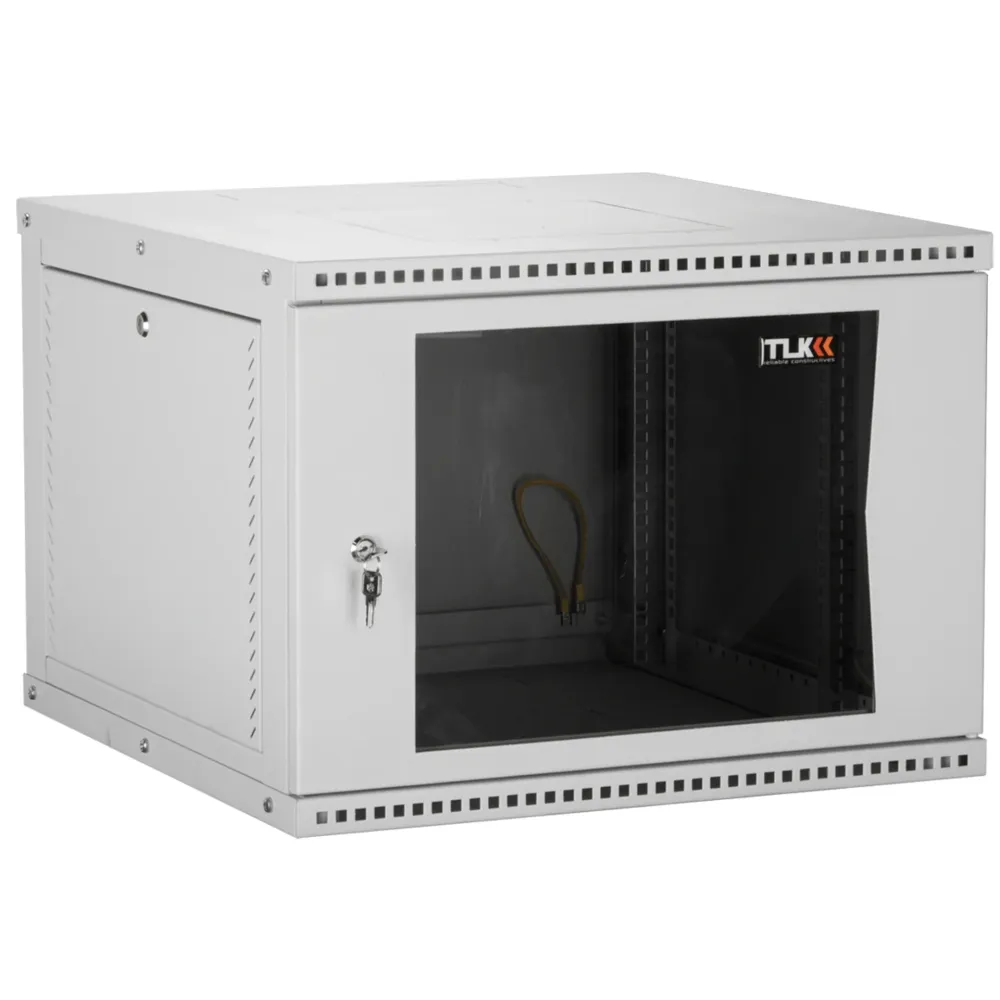 Настенный разборный шкаф TLK 19", 9U, стеклянная дверь, Ш600хВ436хГ450мм, 1 пара монтажных направляющих, серый