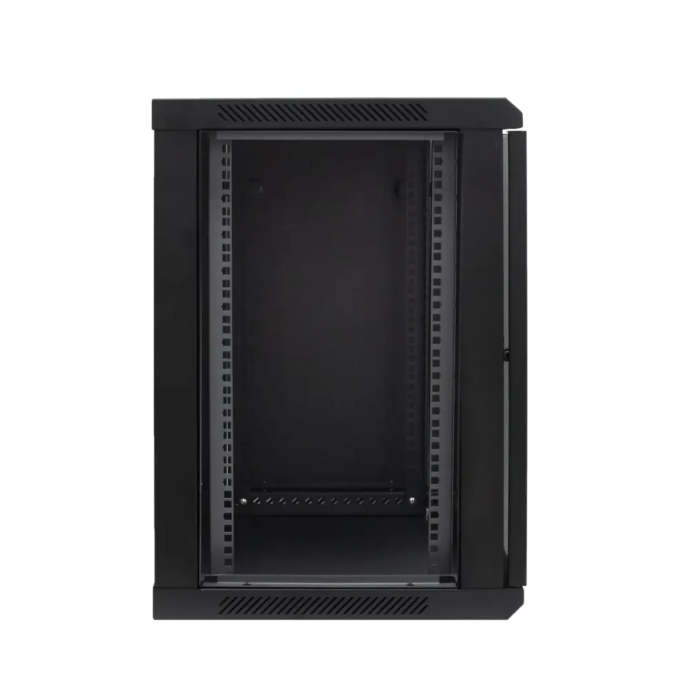 Телекоммуникационные шкафы серии TWC предназначены для компактного размещения оптического и электротехнического оборудования систем передачи данных. Небольшие размеры по сравнению с напольными телекоммуникационными шкафами позволяют размещать не только в закрытых серверных, но и в офисных помещениях, коридорах и лестничных пролётах. Современный дизайн легко и эргономично впишется в любой интерьер.В комплекте идут монтажные вертикальные направляющие для крепления стандартного 19 дюймового оборудования. Направляющие пронумерованы в соответствии с количеством юнитов, для упрощения процесса монтажа. Направляющие регулируются по глубине. Доступ к оборудованию, устанавливаемому в шкафу, может осуществляться с трёх сторон. Шкаф поставляется в разобранном виде, цвет шкафа RAL 9005 (черный).Дверь шкафа стеклянная, стекло 5 мм и поставляется с замком. Установка двери возможна как с правой, так и с левой стороны. Замок защищает от нежелательного доступа третьих лиц в шкаф. Боковые панели шкафов - легкосъемные для упрощения доступа к установленному оборудованию, снабжены защелками.Ввод кабеля осуществляется через верхнюю или нижнюю панели шкафа через предусмотренные кабельные вводы размером 340х56мм. В крышу шкафа предусмотрена установка двух 120мм вентиляторов либо вентиляторного модуля.Сделано в России. Внесено в реестр Минпромторга.Прямое общение с изготовителями настенных шкафов.Обсуждаем идеи, отвечаем на вопросы, принимаем критику, созидаем вместе.Телеграм-чат t.me/nagtac Конструкция 1. Рама 2. Боковая дверь 3. Монтажная рама 4. Монтажная направляющая 5. Передняя дверь 6. Замок Габаритные размер Крепление к стене Шкаф крепится к стене при помощи универсальноко кронштейна в четырёх точках. Регулируемые напраляющие Универсальные направляющие регулируются по глубине при помощи крепёжного набора. Максимальное полезное расстояние между направляющими 390мм, длина уголка для оборудования составляет 270мм.