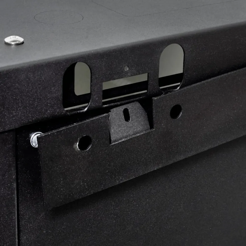 Телекоммуникационные шкафы серии TWC предназначены для компактного размещения оптического и электротехнического оборудования систем передачи данных. Небольшие размеры по сравнению с напольными телекоммуникационными шкафами позволяют размещать не только в закрытых серверных, но и в офисных помещениях, коридорах и лестничных пролётах. Современный дизайн легко и эргономично впишется в любой интерьер, цвет шкафа RAL 9005.В комплекте идут монтажные вертикальные направляющие для крепления стандартного 19 дюймового оборудования. Направляющие пронумерованы в соответствии с количеством юнитов, для упрощения процесса монтажа. Направляющие регулируются по глубине. Доступ к оборудованию, устанавливаемому в шкафу, может осуществляться с трёх сторон. Шкаф поставляется в разобранном виде.Дверь шкафа стеклянная, стекло 5 мм и поставляется с замком. Установка двери возможна как с правой, так и с левой стороны. Замок защищает от нежелательного доступа третьих лиц в шкаф. Боковые панели шкафов - легкосъемные для упрощения доступа к установленному оборудованию, снабжены защелками.Ввод кабеля осуществляется через верхнюю или нижнюю панели шкафа через предусмотренные кабельные вводы размером 340х56мм. В крышу шкафа предусмотрена установка двух 120мм вентиляторов либо вентиляторного модуля.Сделано в России. Внесено в реестр Минпромторга. Конструкция 1. Рама 2. Боковая дверь 3. Монтажная рама 4. Монтажная направляющая 5. Передняя дверь 6. Замок Габаритные размер Крепление к стене Шкаф крепится к стене при помощи универсальноко кронштейна в четырёх точках. Регулируемые напраляющие Универсальные направляющие регулируются по глубине при помощи крепёжного набора. Максимальное полезное расстояние между направляющими 390мм, длина уголка для оборудования составляет 270мм.