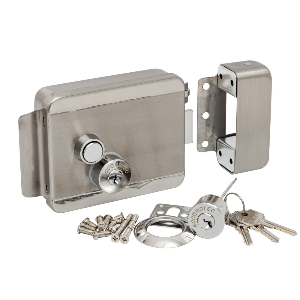 Бренд: AccordTecФункционал: Электромеханический замокНапряжение питания: 12 ВРабочая температура, °С: -30 °С… +50 °СГабаритные размеры, мм: 163 x 47 x 106Материал корпуса: нержавеющая стальМасса, г: 1300Страна: РоссияВид: нормально закрытыйТок потребления: 3500 ± 5% (импульс)Категория по применению: для СКУД || для дверейСпособ монтажа: накладнойОсобенности: Личинка и 5 ключей в комплектеБлокировка выхода: естьКнопка выхода: естьГарантия: 1 год