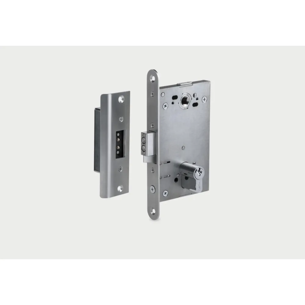 Врезной электромеханический замок с контактным устройством, нормально открытый, межцентровое расстояние 85 мм