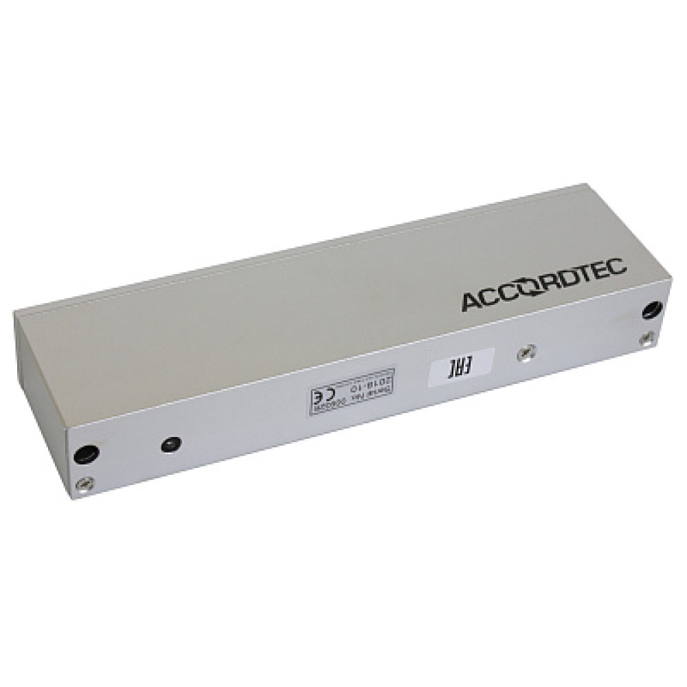 Электромагнитный замок, 12V/24V DC, не более 0,5 A, усилие 500 кг, габаритные размеры 266?67?39 мм. Масса брутто 4570 г., офисный дизайн, планка в комплекте.Механический компенсатор эффекта остаточной намагниченности на якоре замка.Световая индикация. Темп.диапазон -40°С…+40°СХарактеристики:Бренд: ACCORDTECСтрана: РоссияФункционал: электромагнитный замокКатегория по применению: для СКУД / для дверейРабочая температура, °С: от -40 до +50Габаритные размеры, мм: 266 x 67 x 39Материал корпуса: металлЦвет корпуса: сереброМасса, г: 4570Усилие удержания, кг: 500Тип установки: накладнойНапряжение питания, В: 12,0/24,0Ток потребления, мА: 500 (12В ) / 250 (24В)Тип замка: нормально открытыйДатчик состояния замка (датчик Холла): нетДатчик положения двери: нетСветовая индикация: естьКомплектация: планкаГабаритные размеры ответной части, мм: 185 х 60 х 16