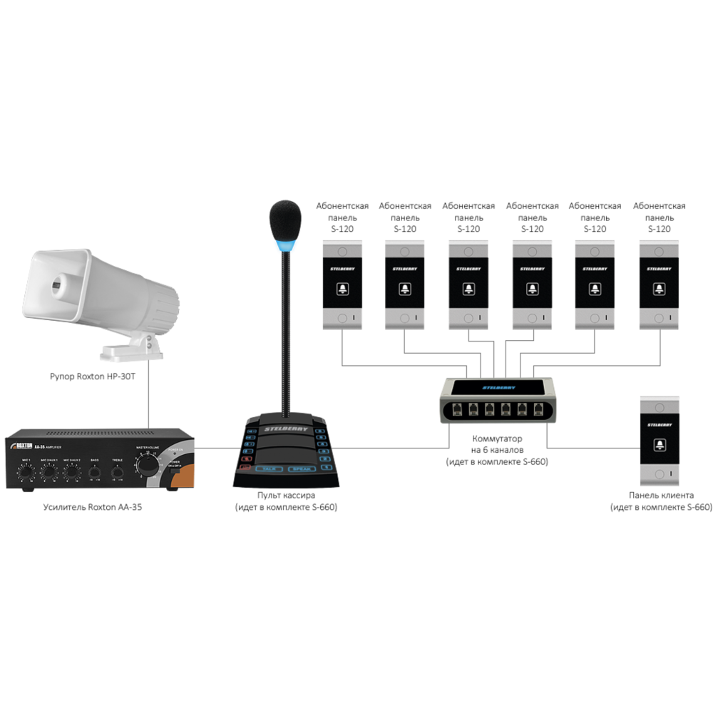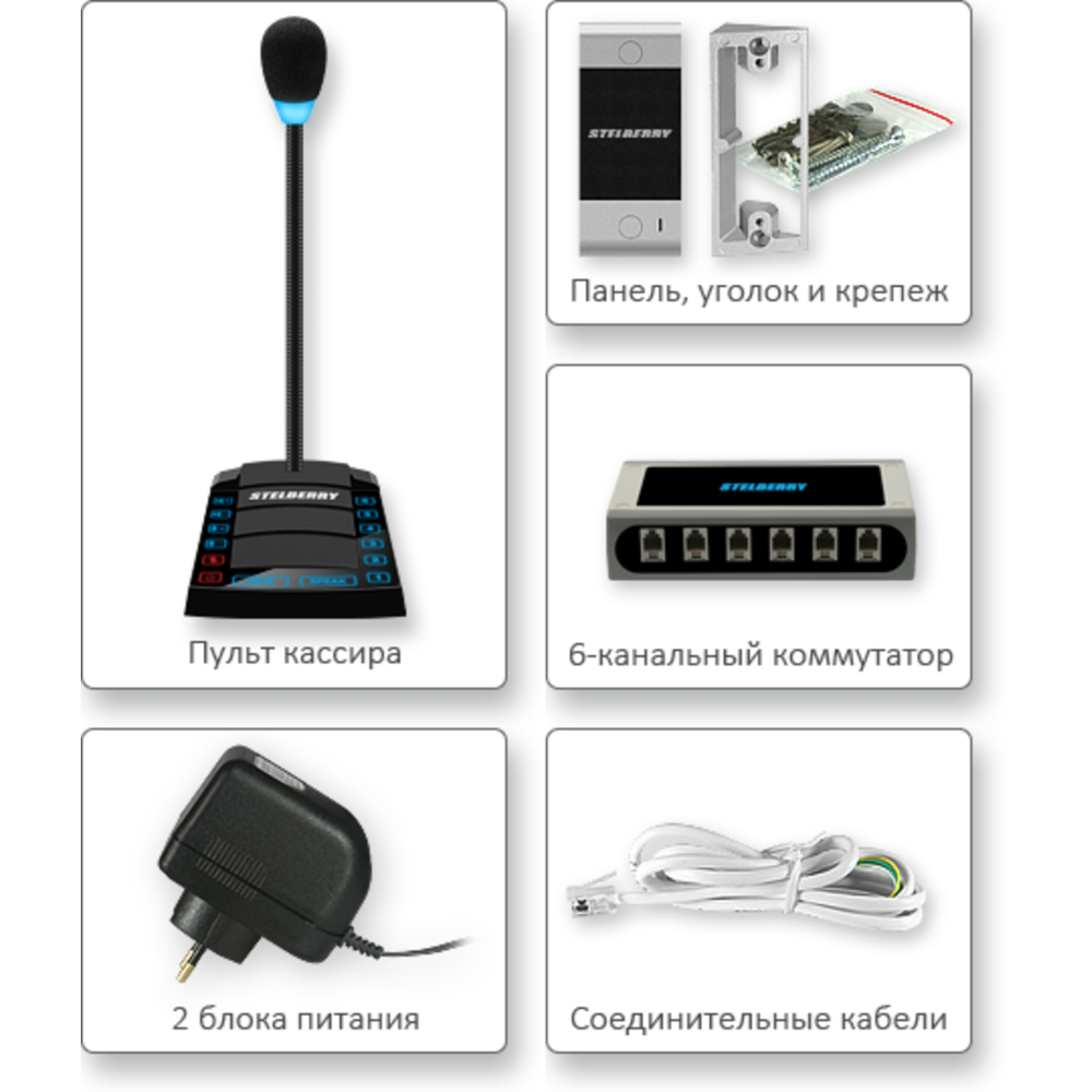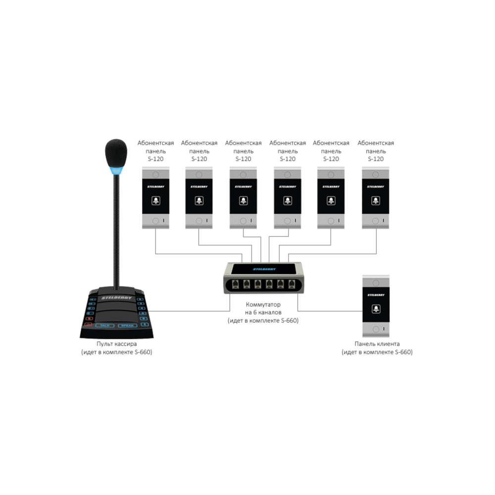 6-канальное переговорное устр-во Stelberry S-660 для АЗС класса «Клиент-Кассир» с функциями диспетч. связи, громкого оповещения и режимом «СИМПЛЕКС»