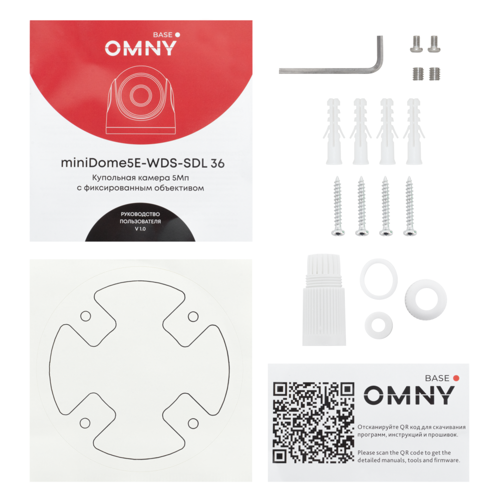 Комплект поставки | Камера - 1 шт, паспорт - 1 шт, наклейка для монтажа - 1 шт, визитная карточка - 1 шт, шестигранный ключ - 1 шт, дюбели - 4 шт, саморезы - 4 шт, винты 2.5*5 - 4 шт, герметичный коннектор - 1 шт |