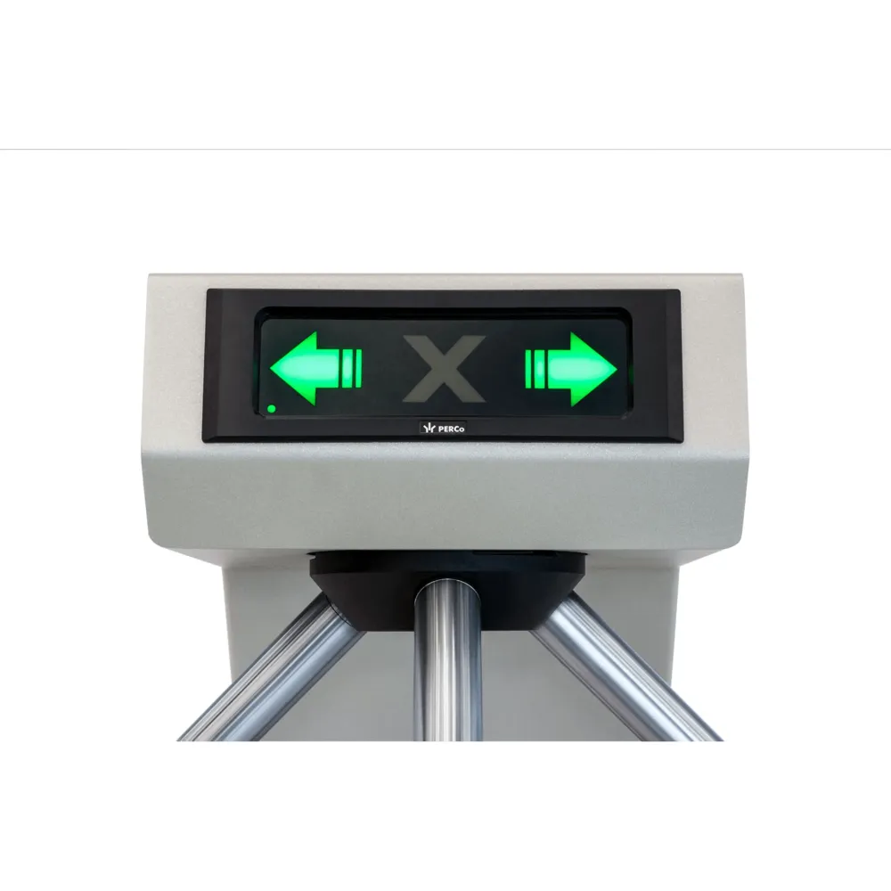 В стойку турникета встроены оптические датчики поворота преграждающих планок, которые позволяют корректно фиксировать факт и направление прохода при работе турникета под управлением СКУД.